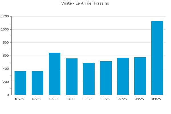Nella retta verticale il numero delle Visite - Nella retta orizzontale gli ultimi 12 mesi (se disponibili), escluso il mese corrente, che viene automaticamente aggiunto/visualizzato il primo giorno del mese successivo.