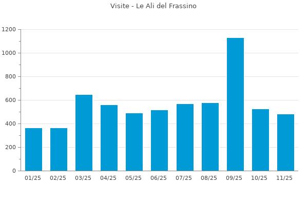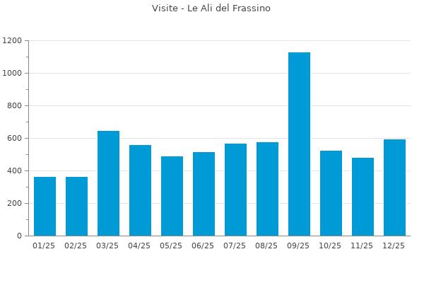 Nella retta verticale il numero delle Visite - Nella retta orizzontale gli ultimi 12 mesi (se disponibili), escluso il mese corrente, che viene automaticamente aggiunto/visualizzato il primo giorno del mese successivo.