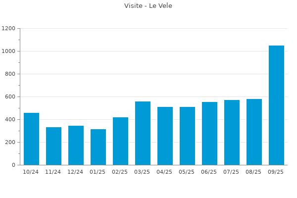 Nella retta verticale il numero delle Visite - Nella retta orizzontale gli ultimi 12 mesi (se disponibili), escluso il mese corrente, che viene automaticamente aggiunto/visualizzato il primo giorno del mese successivo.