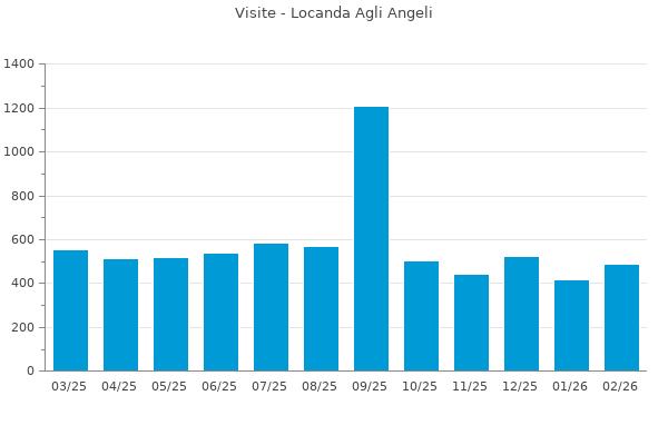 Nella retta verticale il numero delle Visite - Nella retta orizzontale gli ultimi 12 mesi (se disponibili), escluso il mese corrente, che viene automaticamente aggiunto/visualizzato il primo giorno del mese successivo.