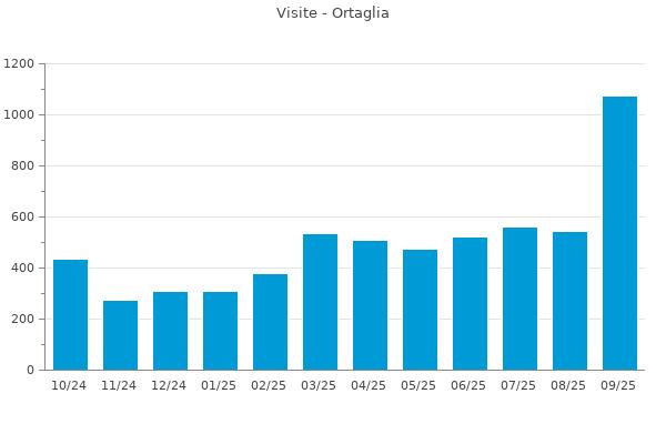 Nella retta verticale il numero delle Visite - Nella retta orizzontale gli ultimi 12 mesi (se disponibili), escluso il mese corrente, che viene automaticamente aggiunto/visualizzato il primo giorno del mese successivo.