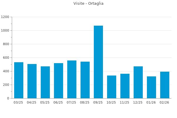 Nella retta verticale il numero delle Visite - Nella retta orizzontale gli ultimi 12 mesi (se disponibili), escluso il mese corrente, che viene automaticamente aggiunto/visualizzato il primo giorno del mese successivo.
