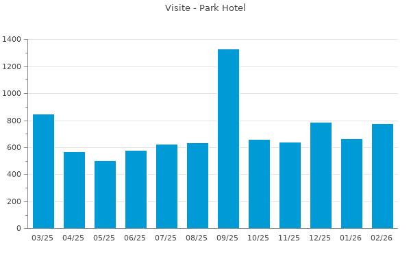 Nella retta verticale il numero delle Visite - Nella retta orizzontale gli ultimi 12 mesi (se disponibili), escluso il mese corrente, che viene automaticamente aggiunto/visualizzato il primo giorno del mese successivo.