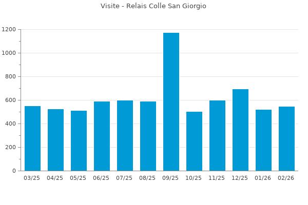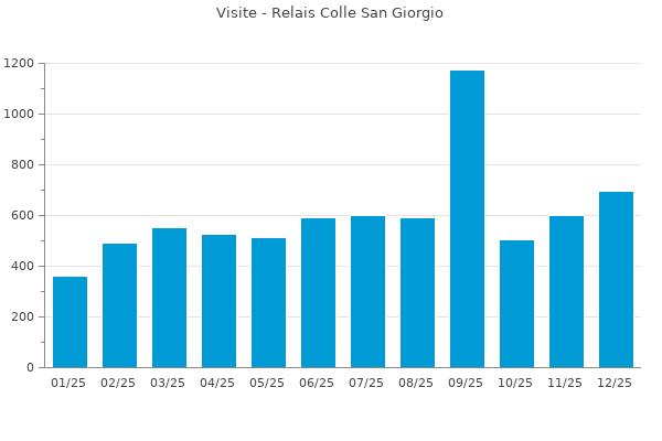 Nella retta verticale il numero delle Visite - Nella retta orizzontale gli ultimi 12 mesi (se disponibili), escluso il mese corrente, che viene automaticamente aggiunto/visualizzato il primo giorno del mese successivo.