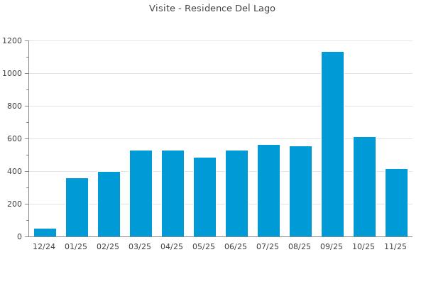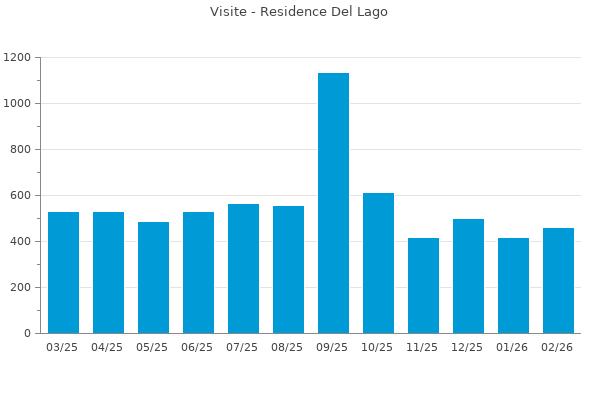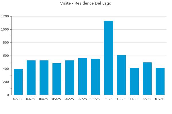 Nella retta verticale il numero delle Visite - Nella retta orizzontale gli ultimi 12 mesi (se disponibili), escluso il mese corrente, che viene automaticamente aggiunto/visualizzato il primo giorno del mese successivo.