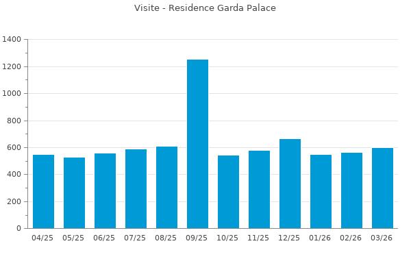 Statistiche delle visite al sito: https://www.booking.com/hotel/it/residence-garda-palace.en-gb.html?utm_source=Gardalake.com&utm_medium=referral provenienti da: https://www.gardalake.com/place/residence-garda-palace-peschiera-del-garda/