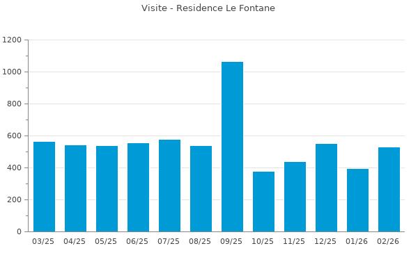Nella retta verticale il numero delle Visite - Nella retta orizzontale gli ultimi 12 mesi (se disponibili), escluso il mese corrente, che viene automaticamente aggiunto/visualizzato il primo giorno del mese successivo.