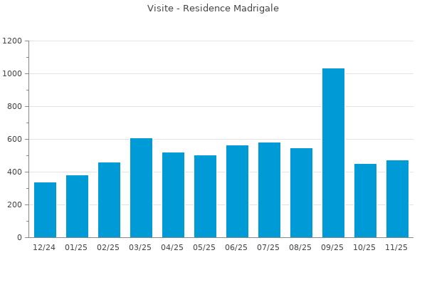 Nella retta verticale il numero delle Visite - Nella retta orizzontale gli ultimi 12 mesi (se disponibili), escluso il mese corrente, che viene automaticamente aggiunto/visualizzato il primo giorno del mese successivo.