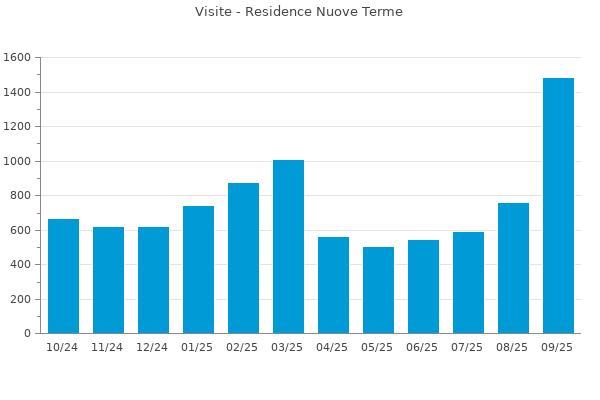 Nella retta verticale il numero delle Visite - Nella retta orizzontale gli ultimi 12 mesi (se disponibili), escluso il mese corrente, che viene automaticamente aggiunto/visualizzato il primo giorno del mese successivo.