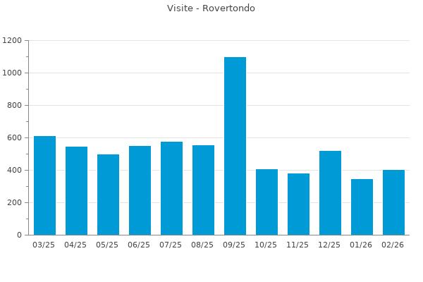 Nella retta verticale il numero delle Visite - Nella retta orizzontale gli ultimi 12 mesi (se disponibili), escluso il mese corrente, che viene automaticamente aggiunto/visualizzato il primo giorno del mese successivo.