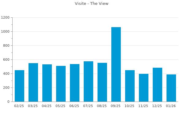 Nella retta verticale il numero delle Visite - Nella retta orizzontale gli ultimi 12 mesi (se disponibili), escluso il mese corrente, che viene automaticamente aggiunto/visualizzato il primo giorno del mese successivo.
