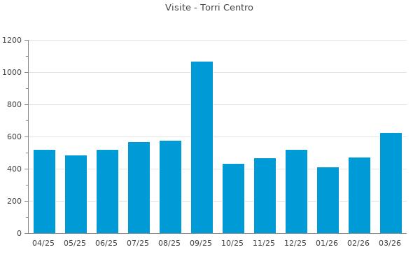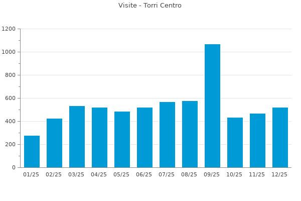 Nella retta verticale il numero delle Visite - Nella retta orizzontale gli ultimi 12 mesi (se disponibili), escluso il mese corrente, che viene automaticamente aggiunto/visualizzato il primo giorno del mese successivo.