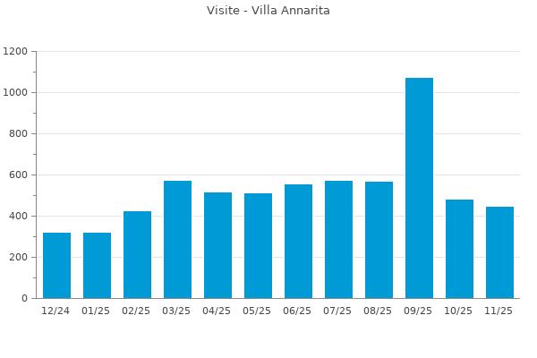 Nella retta verticale il numero delle Visite - Nella retta orizzontale gli ultimi 12 mesi (se disponibili), escluso il mese corrente, che viene automaticamente aggiunto/visualizzato il primo giorno del mese successivo.