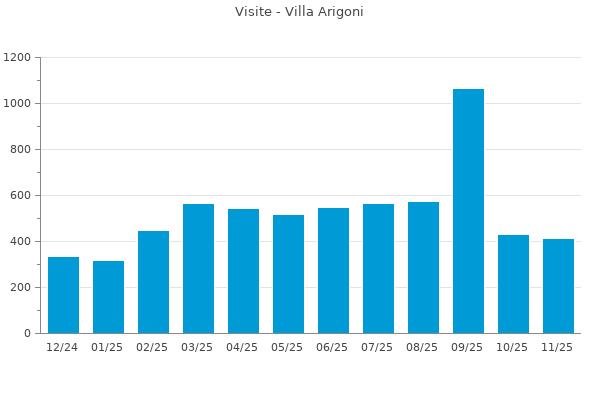 Nella retta verticale il numero delle Visite - Nella retta orizzontale gli ultimi 12 mesi (se disponibili), escluso il mese corrente, che viene automaticamente aggiunto/visualizzato il primo giorno del mese successivo.