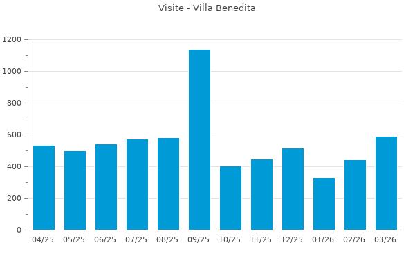 Nella retta verticale il numero delle Visite - Nella retta orizzontale gli ultimi 12 mesi (se disponibili), escluso il mese corrente, che viene automaticamente aggiunto/visualizzato il primo giorno del mese successivo.