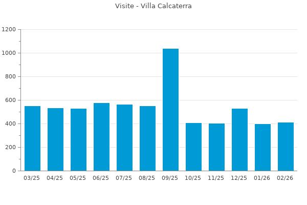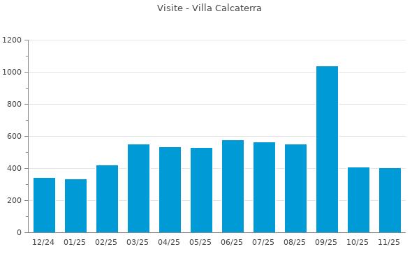 Nella retta verticale il numero delle Visite - Nella retta orizzontale gli ultimi 12 mesi (se disponibili), escluso il mese corrente, che viene automaticamente aggiunto/visualizzato il primo giorno del mese successivo.