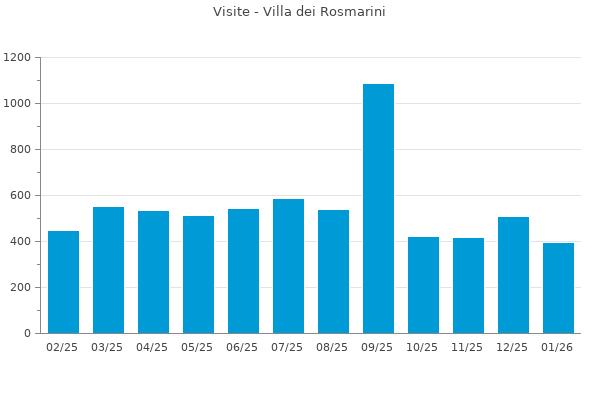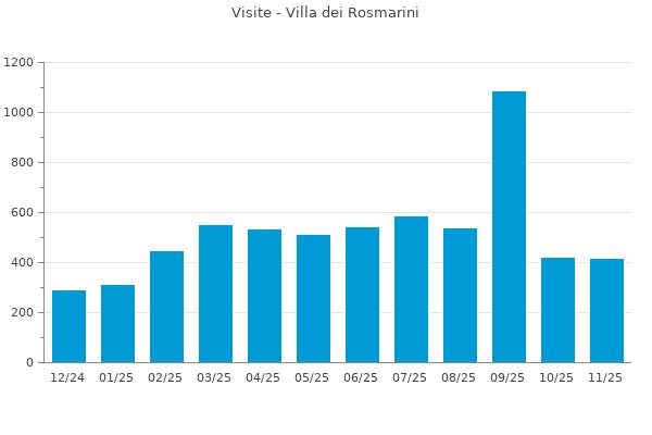 Nella retta verticale il numero delle Visite - Nella retta orizzontale gli ultimi 12 mesi (se disponibili), escluso il mese corrente, che viene automaticamente aggiunto/visualizzato il primo giorno del mese successivo.