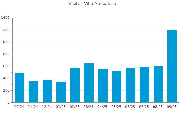 Nella retta verticale il numero delle Visite - Nella retta orizzontale gli ultimi 12 mesi (se disponibili), escluso il mese corrente, che viene automaticamente aggiunto/visualizzato il primo giorno del mese successivo.
