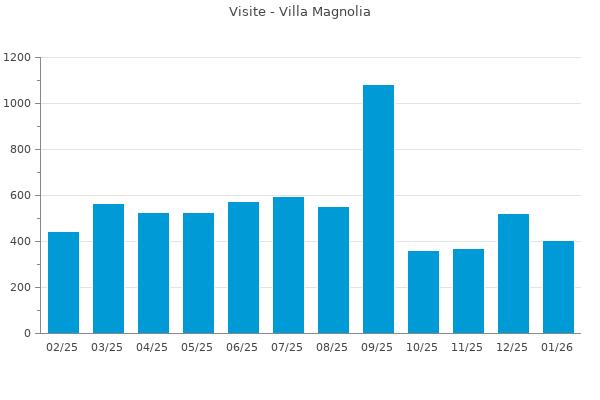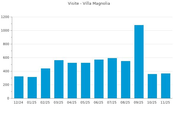 Nella retta verticale il numero delle Visite - Nella retta orizzontale gli ultimi 12 mesi (se disponibili), escluso il mese corrente, che viene automaticamente aggiunto/visualizzato il primo giorno del mese successivo.