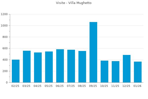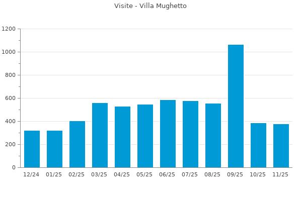 Nella retta verticale il numero delle Visite - Nella retta orizzontale gli ultimi 12 mesi (se disponibili), escluso il mese corrente, che viene automaticamente aggiunto/visualizzato il primo giorno del mese successivo.