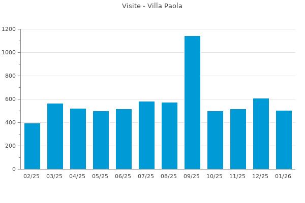 Nella retta verticale il numero delle Visite - Nella retta orizzontale gli ultimi 12 mesi (se disponibili), escluso il mese corrente, che viene automaticamente aggiunto/visualizzato il primo giorno del mese successivo.