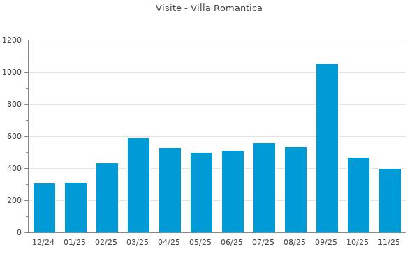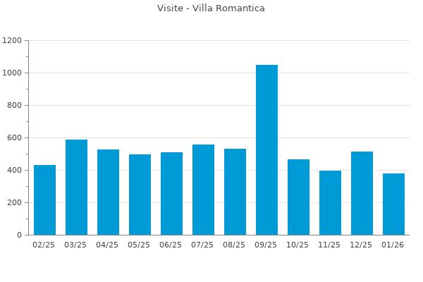 Nella retta verticale il numero delle Visite - Nella retta orizzontale gli ultimi 12 mesi (se disponibili), escluso il mese corrente, che viene automaticamente aggiunto/visualizzato il primo giorno del mese successivo.